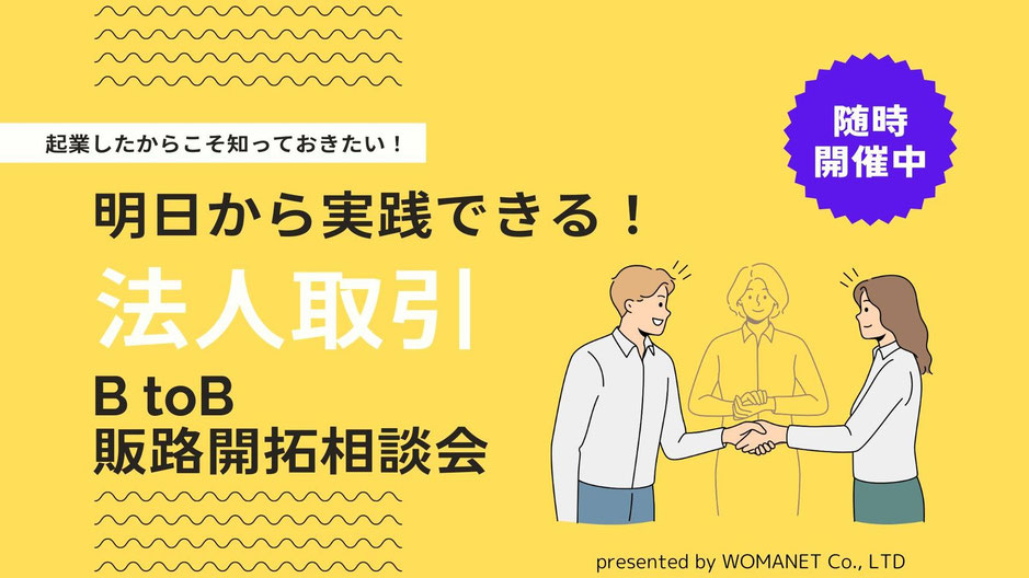起業して大きな売り上げアップを目指したい方向けの法人取引個別相談会を随時開催中です。